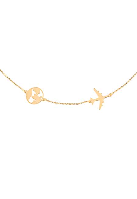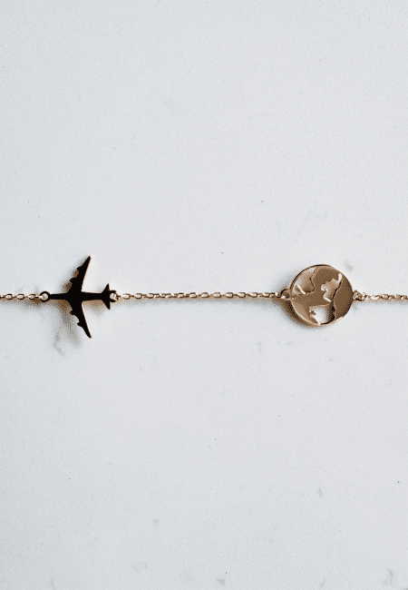 Bransoletka pozłacana globus z samolotem