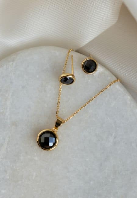 Pozłacany komplet z czarnym kryształem
