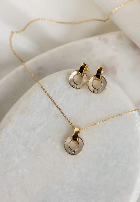 Pozłacany komplet z masa perłową