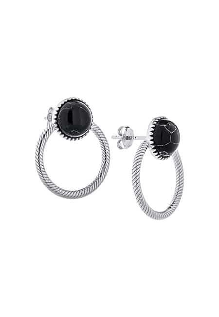 Kolczyki srebrne z czarnym kamieniem