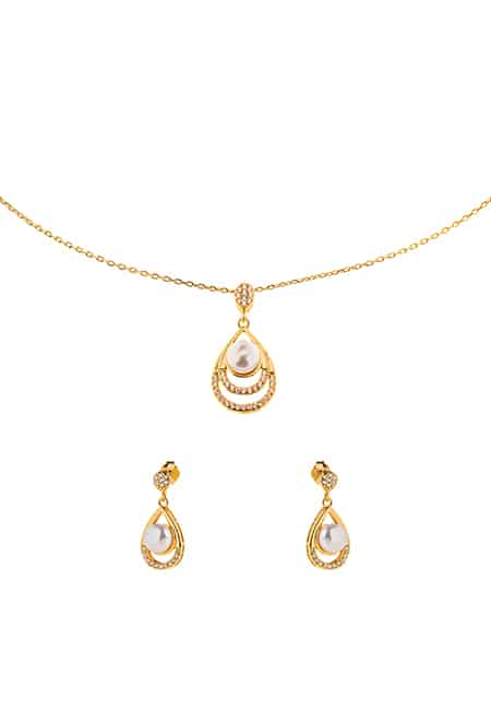 Pozłacany zestaw z perłami – naszyjnik i kolczyki